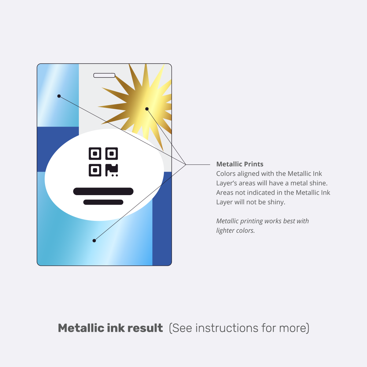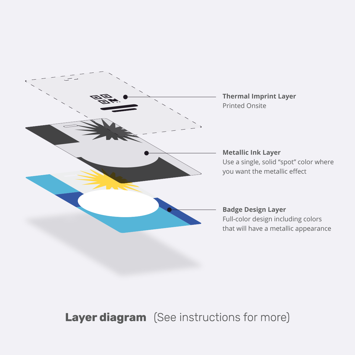 For badge orders with metallic inks, please include a design file with metallic areas on their own layer.